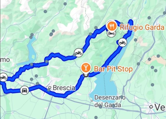 Bellusco-Trezzo D'Adda-Brembate-Zingonia-Ghisalba-Cascina Baraccone-Torre Passeri-Urago D'Oglio-Castrezzato-Roncadelle-Gavardo-Salò-Gardone Riviera-Toscolano Maderno-Gargnano-Strada della Forra-Pieve-Vesio-Bassanega-Limone del Garda-Riva del Garda-Biacesa di Ledro-Molina di Ledro-Mezzolago-Bezzecca-Tiano di Sopra-Passo Tremalzo-Storo-Ponte Caffaro-Anfo-Vestone-Casto-Lodrino-Brozzo-Gardone Val Trompia-Polaveno-Iseo-Timoline-Nigoline-Zocco-Palazzolo sull'Oglio-Ghisalba-Canonica D'Adda-Bellusco