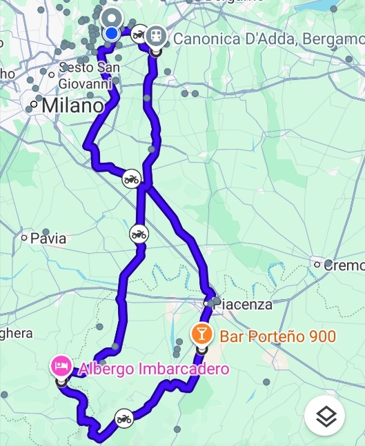 Bellusco-Ornago-Omate-Melzo-Settala-Caleppio-Dresano-Sordio-Lodi-Casalpusterlengo-Guardamiglio-San Rocco Al Porto-Piacenza-Vigolzone-Pontedell'Olio-Travo-Perino-Bobbio-Romagnese-Zavattarello-Pianello Val Tidone-Borgonovo-Castel San Giovanni-Chignolo Po-San Colombano al Lambro-Lodi-Pandino-Cassano D'Adda-Canonica D'Adda-Bellusco.