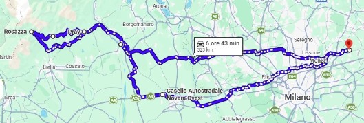 Bellusco-Monza-Autostrada fino a Novara Ovest-Ghemme-Romagnano Sesia-Crevacuore-Valle Fredda-Ponzone-Polto-Massaro-Valle Mosso-Romanina-Vacchione-Cordaro Stelio-Sagliano Micca-San Paolo Cervo-Rosazza-Forgnengo-Panoramica Zegna-Zegna-Ferla-Pray-Crevacuore-Cavaglio D'agogna-Oleggio-Busto Arsizio-Muggio-Monza-Vimercate-Bellusco.